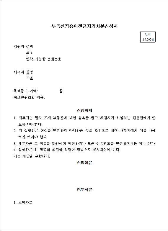 가처분신청으로 자주 사용되는 것이 '부동산점유이전금지 가처분 신청서'입니다.