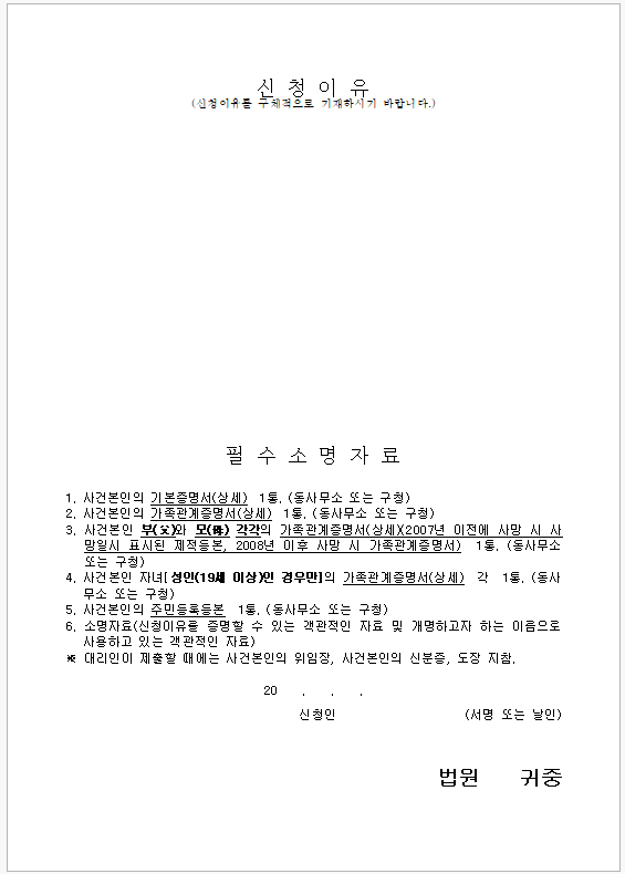 이번 글에서는 개명허가 신청서 양식을 안내해 드리겠습니다.