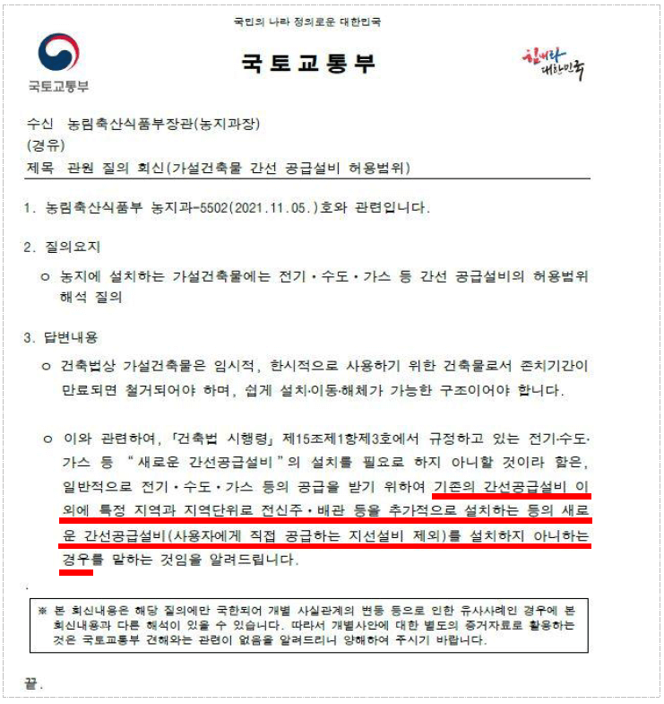 관련 근거 : 국토교통부 공문