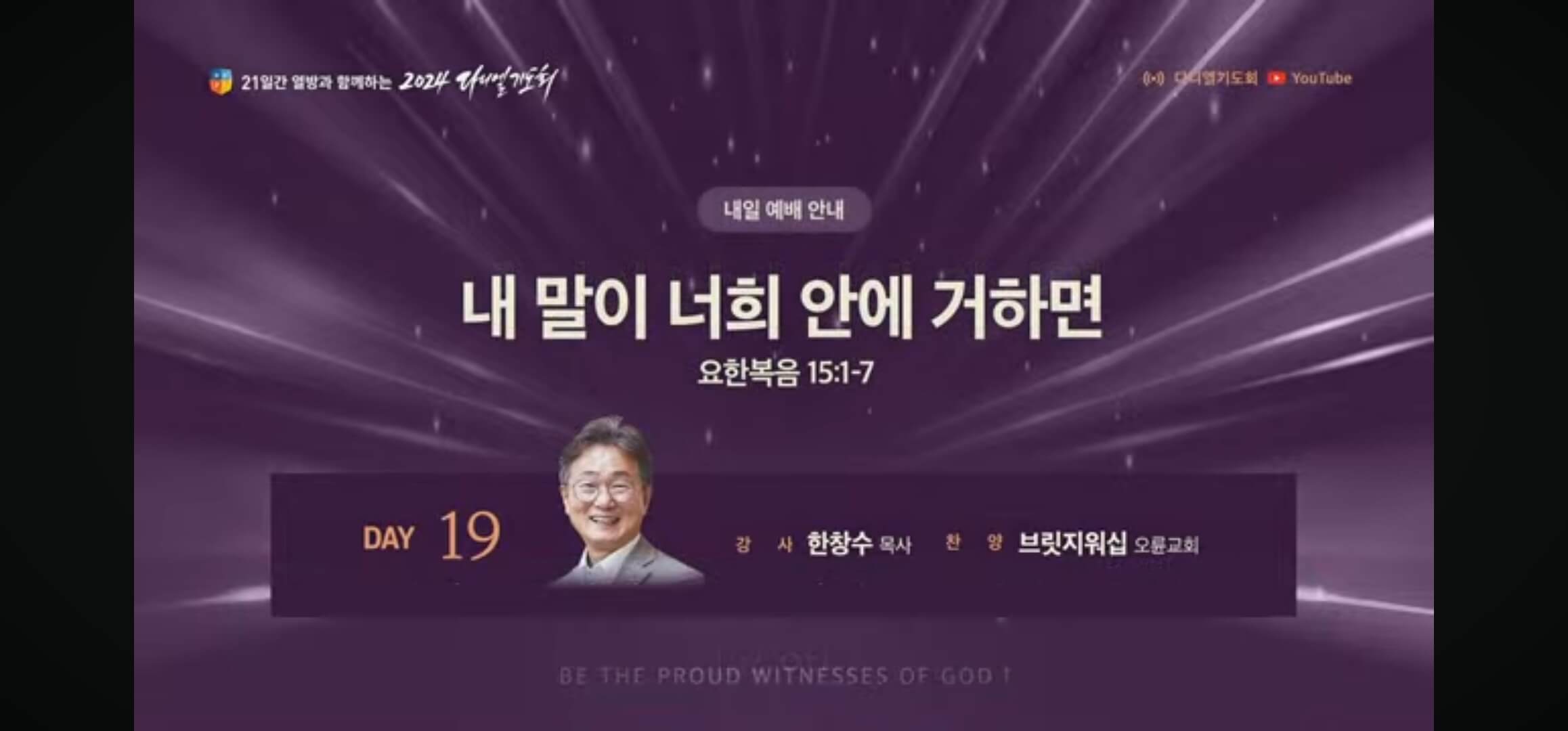 ※ 2024 다니엘 기도회의 간증 영상들을 찾아보시려면 다음 글을 참고해 주세요.
