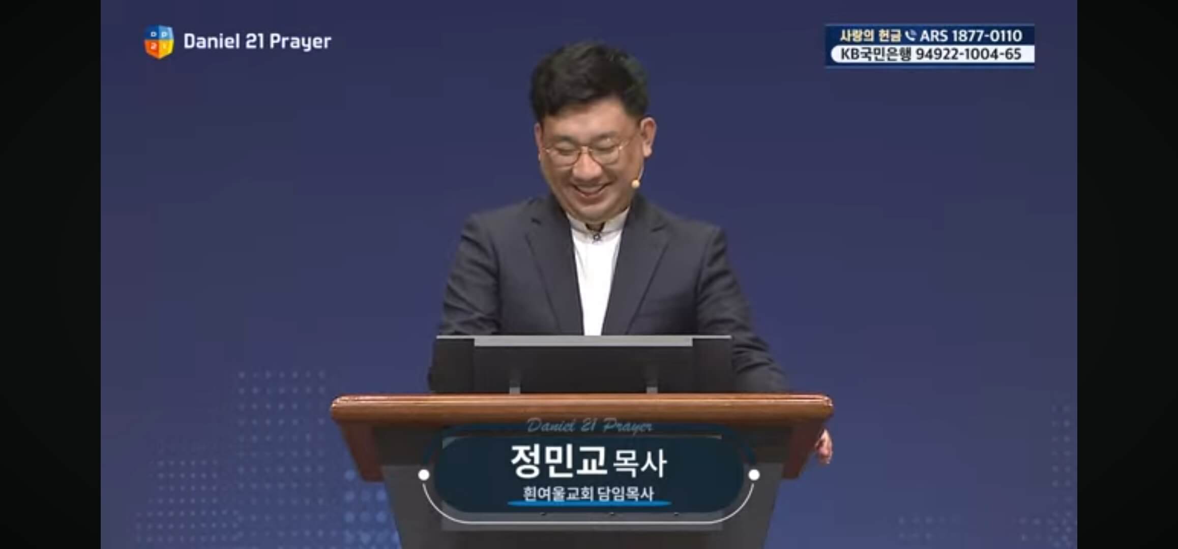 이번 글에서는 2024 다니엘 기도회 9일차 강사셨던 정민교 목사님의 간증 내용을 안내해 드리도록 하겠습니다.