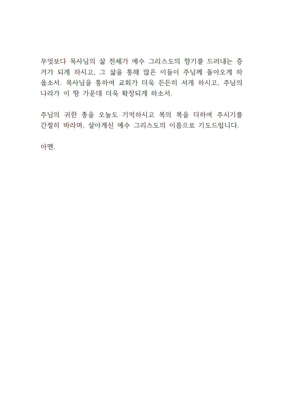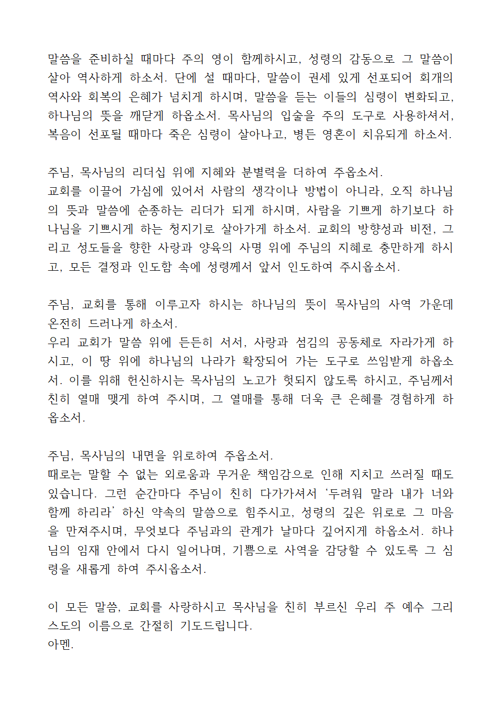 이 모든 말씀, 교회를 사랑하시고 목사님을 친히 부르신 우리 주 예수 그리스도의 이름으로 간절히 기도드립니다.