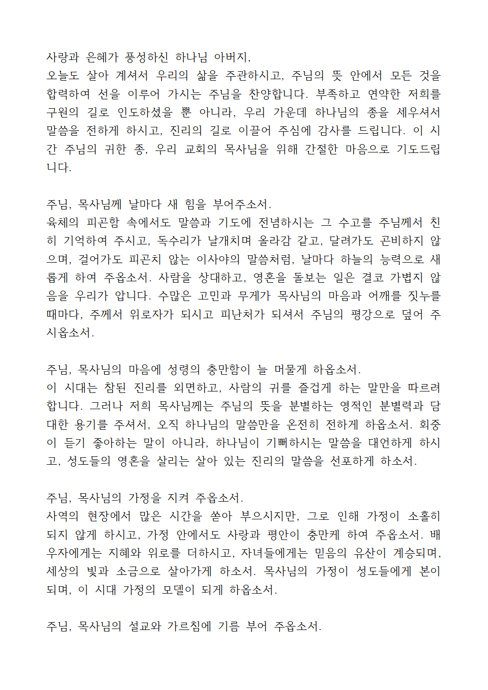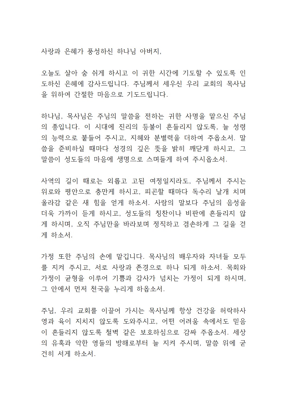 목사님을 위한 기도문 2