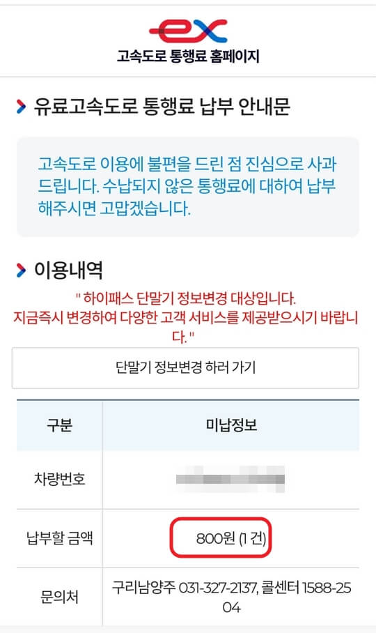 간혹 하이패스 요금이 미납된 상태로 놔두었다가 곤란한 경우가 생기기도 하지요.