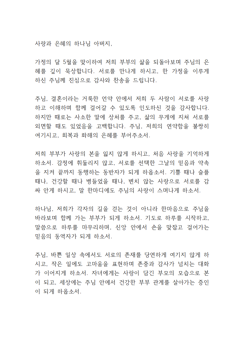 이번 글에서는 2025년 가정의 달 기도문을 안내해 드리겠습니다.