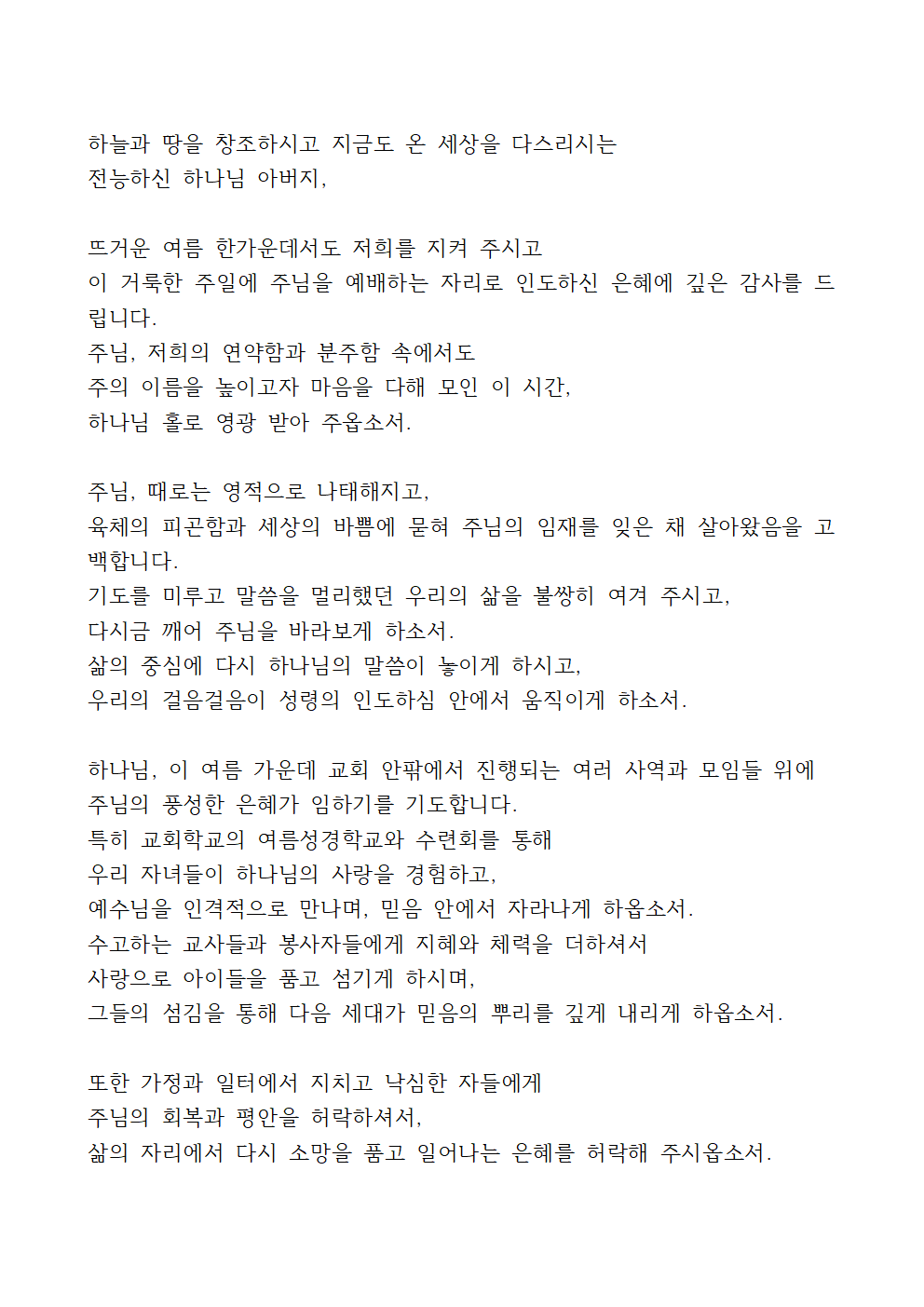 '7월 셋째주일 대표기도문